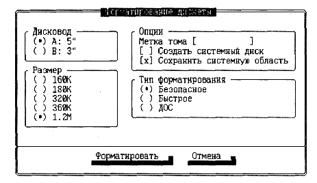 Рис. 10.16. Вид диалогового окна форматирования дискет