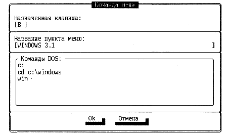 Рис. 10.28. Вид окна редактирования пункта меню пользователя для вызова Windows 3.1