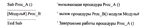 2. Из другой процедуры другого (подключенного) модуля вызов осуществляется по имени модуля, имени процедуры (в пределах одного приложения)