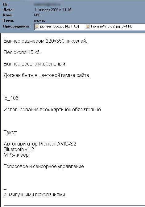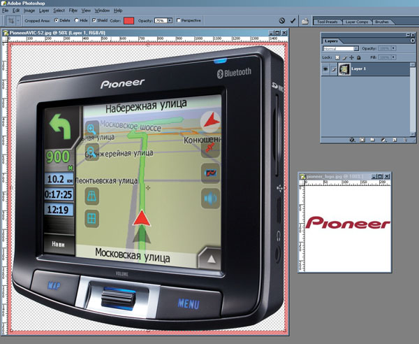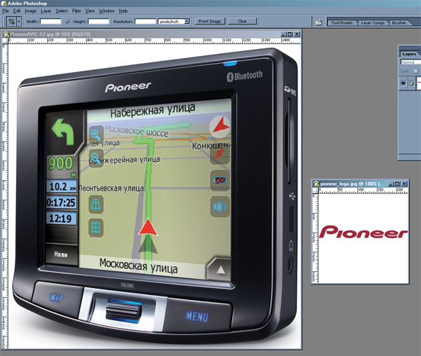 Я обычно сразу же копирую все тексты-ТЗ из письма в текстовый файл, который кладу в папку, заведенную для работы над конкретным заказом. В дальнейшем гораздо удобнее "копипейстить" тексты или просто сверяться с ТЗ. Туда же - и все картинки из аттачмента. Для начала внимательно вчитаемся в материал и всмотримся в предлагаемые картинки. Картинку нам нужно будет "обтравить" (я практически всегда "обтравливаю" сразу все картинки - это в подавляющем большинстве случаев занимает несколько минут, а картинки с "родным" фоном в баннерах нужны редко), изображение с логотипом - "подрезать" (убрать лишнее). И обе картинки привести к размеру, соотносящемуся с размерами баннера. Поскольку вопросы обтравки не входят в основную тему, подробно я на этом останавливаться не буду.