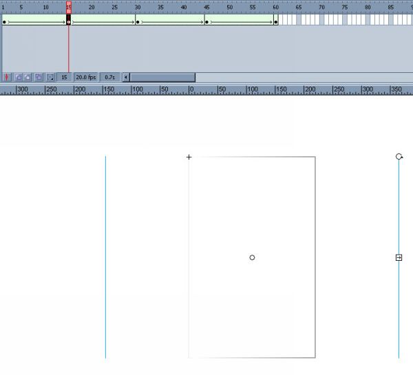 Flash - весьма своеобразный векторный редактор. В данном случае весьма удобно воспользоваться его особенностью - возможностью редактирования Shape-ов прямо инструментом "Select" - и превратить т.о. прямоугольник в трапецию. Для этого надо "подтащить" верхние углы прямоугольничка к середине. Однако если вы промахнетесь и уголки "соединятьс" - придется давить "Ctrl+Z", чтобы вернуть все как было и начать операцию с начала - Flash тут же "сольет" два узла кривой в один, чего нам совсем не надо: