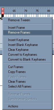 После этого конвертируем в кейфрейм фрейм 59 (F6) и удаляем фрейм 60 - чтобы фрейм 60 и фрейм 1, которые у нас одинаковы, не давали при проигрывании в цикле задержки движения нашего "блика".