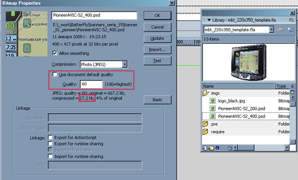 Картинки сразу же оптимизируем, обращая внимание и на размер, и на качество изображения. Для баннера качество должно быть обычно "на пределе допустимого" - поскольку имеются довольно-таки жесткие ограничения по размеру.