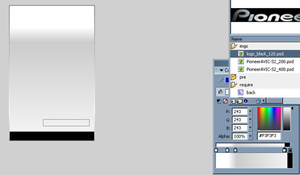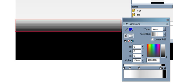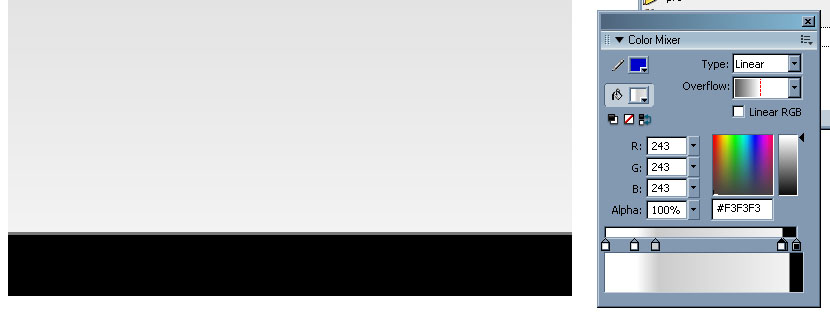 я заметил, что получившийся у меня градиент не идеален и дает неприятную "ступеньку" от серого к черному. (это неудивительно при "мелкодетальном" флэшевском интерфейсе):