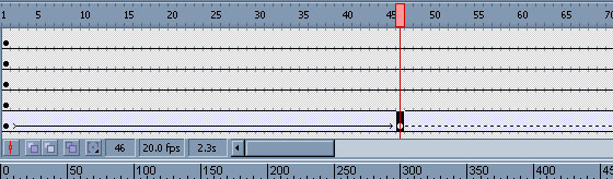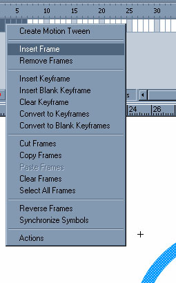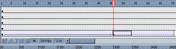 Проиграв анимацию прямо в окне, убеждаемся, что 60 фреймов - длинновато, медленно он все-таки "выбирается" - нужно, чтобы посетитель скорее на секунду-другую увидел объект его будущего желания. Сдвигаем кейфрейм конца MotionTween-а примерно на 40 - 45 кадр.дальше - мы ведь "подтянули "хвостик" - добавим фреймов за концом MotionTween. Выберем несколько путсых фреймов за конечным фреймом нашегоMotionTween (включая этот кейфрейм) и - RMB ->InsertFrame. Дальше оттаскиваем получившийся "глубой хвост" (за последний его фрейм при "зажатом" Ctrl) до... давайте до 240 фрейма. Примерно так получается, если прочитать весь текст не торопясь.