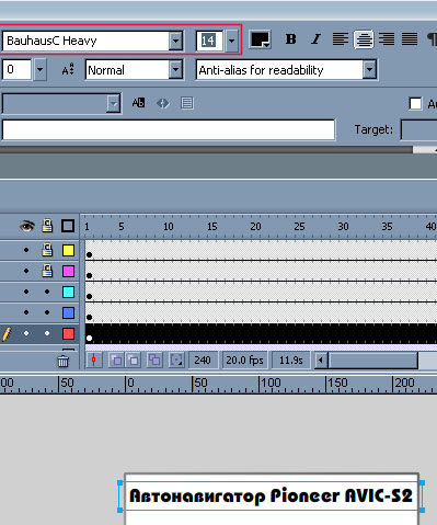 ...и помещаем ее (D&D из Library) на этот слой, в первй фрейм: