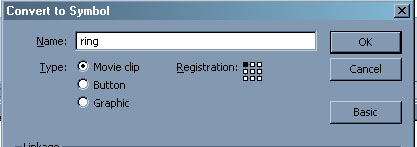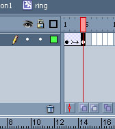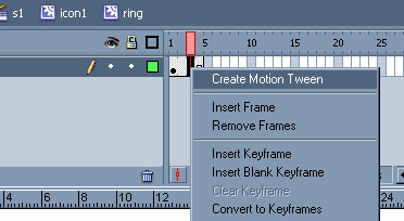 Переходим к редактированию ring (DC на нем) и добавляем фреймы в единственном слое, создаем MotionTween нашего "колечка":