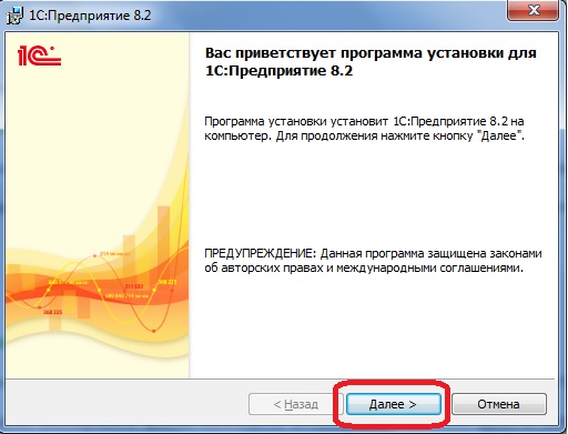 После непродолжительного ожидания появляется окно приветствия программы установки. Нажимаем "Далее"