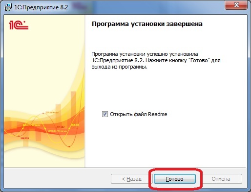 Программа установки завершена. Убираем галочку с "Открыть файл Readme" если не хотим читать дополнительную информацию и нажимаем "Готово":