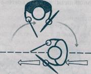 В то время как подвижный боец смещается с линии атаки и наносит удар, прямой атакует пустое место. Подвижный делает следующий шаг и удар, а прямой успевает развернуться, но снова попадает по пустому месту... Иначе воспринимается атака по касательной или круговой траектории. Реагировать на нее очень трудно, так как соперник постоянно смещается с привычной «пристрелянной» позиции. Прибавьте к этому внезапную смену направления движения и вы получите ситуацию, когда прямой занят только ловлей подвижного «в прицел». В это время прямой остается практически на месте, а подвижный постоянно смещается, сохраняя возможность атаковать. Подвижная атака (контратака) может строиться по касательным линиям или по круговой траектории.