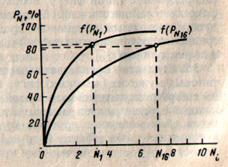 Число типов фигур (номеров) не может быть дробным, поэтому полученная цифра округляется до ближайшего целого числа (по правилам округления). Ответы представляют в таблице 7.3. 2. Для определения оптимального числа типов по сочетанию двух ведущих признаков при различном заданном уровне удовлетворенности можно воспользоваться номограммой, предложенной М.В.Игнатьевым [1, с. 61, рис. 1.19]. 2.1. Номограмма выражает зависимость между тремя переменными: уровнем удовлетворенности PN; числом типов (номеров) фигур N (S) и коэффициентом корреляции между ведущими размерными признаками r1,16.