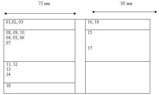 Примечание. 1. Размер бланка 210 на 297 мм. 2. Поля бланка: левое поле – 35 мм; правое поле – 10 мм; нижнее поле –20 мм; верхнее поле – 20 мм. 3. Реквизиты 01, 02, 03, 19 наносят на верхнем поле бланка. 4. Реквизиты 28, 29, 30 наносят на нижнем поле бланка. 5. Максимальная высота границ зон реквизитов: 01, 02, 03–17 мм; 08, 09, 10, 04, 05, 06, 07–20 мм; 11, 12,– 10 мм; 13, 14 – 226 мм; 18–18 мм; 21, 22, 25–20 мм; 23, 24, 26, 27–24 мм; 28, 30, 29–16 мм. Реквизиты наносятся в пределах отведенного поля в соответствии со следующими правилами: 1. При угловом расположении реквизитов: – реквизиты 01, 02, 03 – на верхнем поле бланка симметрично от центра отведенного поля; – реквизит 19 – на верхнем поле бланка, начиная с 48 печатного знака; – реквизит 16 – начиная с 40 печатного знака отведенного поля; – реквизиты 08, 09, 10, 04, 05, 06, 07, 11, 12, 13, 14, 15, 18, начиная от левой границы отведенного поля либо симметрично от центра отведенного поля; – реквизит 20, 21, 22, 25, 23, 24, 26, 27 – начиная от левой границы отведенного поля; – реквизит 28, 30, 29 – последовательно, начиная с левой границы отведенного поля; – реквизит 17 – наносится на любом свободном месте документа на первой странице, либо на отдельном листе бумаги формата А4, который подкалывается к документу. 2. При продольном расположении реквизитов: – реквизиты 01, 02, 03 – на верхнем поле бланка симметрично от центра отведенного поля; – реквизит 19 – на верхнем поле бланка, начиная с 48 печатного знака; – реквизит 16 – начиная с 40 печатного знака отведенного поля; – реквизиты 08, 09, 10, 04, 05, 06, 07-симметрично от центра отведенного поля; – реквизиты 11, 12, 13, 14– симметрично от центра отведенного поля; – реквизиты 15– начиная с 32 печатного знака в пределах отведенного поля либо симметрично от центра отведенного поля; – реквизит 18 – начиная от левой границы отведенного поля; – реквизит 20, 21, 22, 25, 23, 24, 26, 27 – начиная от левой границы отведенного поля; – реквизит 28, 30, 29 – последовательно, начиная с левой границы отведенного поля; – реквизит 17 – наносится на любом свободном месте документа на первой странице, либо на отдельном листе бумаги формата А4, который подкалывается к документу. Реквизит от реквизита отделяется друг от друга 2–4 межстрочными интервалами. Строки межстрочного реквизита отделяются друг от друга одним межстрочным интервалом. Составные части многострочного реквизита отделяются друг от друга 1,5 межстрочными интервалами. Реквизиты: № 01. «Государственный герб Российской Федерации» помещают на бланках документов в соответствии с Федеральным конституционным законом от 25 декабря 2000 г. N 2-ФКЗ «О Государственном гербе Российской Федерации» (с изм. и доп. от 9 июля 2002 г., 30 июня 2003 г.). № 02. «Герб субъекта Российской Федерации» помещают на бланках документов в соответствии с правовыми актами субъектов РФ. № 03. «Эмблему организации или товарный знак (знак обслуживания)» помещают на бланках организаций в соответствии с уставом (положением об организации). № 04. «Код организации» проставляют по Общероссийскому классификатору предприятий и организаций (ОКПО). № 05. «Основной государственный регистрационный номер (ОГРН) юридического лица» проставляют в соответствии с документами, выдаваемыми налоговыми органами. № 06. «Идентификационный номер налогоплательщика/код причины постановки на учет (ИНН/КПП)» проставляют в соответствии с документами, выдаваемыми налоговыми органами. № 07. «Код формы документа