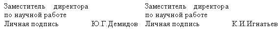 При подписании документа несколькими лицами равных должностей их подписи располагают на одном уровне. Например: