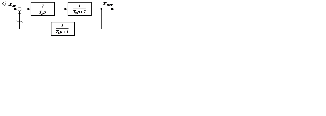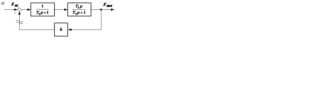 Реально такой структурной схеме (рисунок 5.10, а) может соответствовать система Г-Д (генератор-двигатель) с отрицательной обратной связью по току. Передаточная функция разомкнутой САУ равна