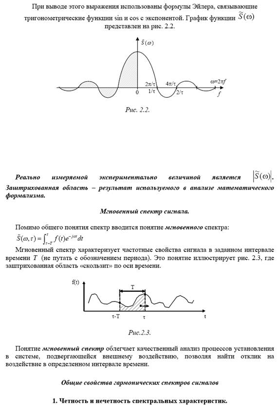 Спектральный метод описания сигналов и анализа результатов их воздействия налинейные системы. Мгновенный спектр. Общие свойства гармонических спектров сигналов. Коэффициент передачи линейной системы. Условие неискаженной передачи сигналов. Корреляционный метод анализа сигналов.