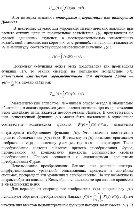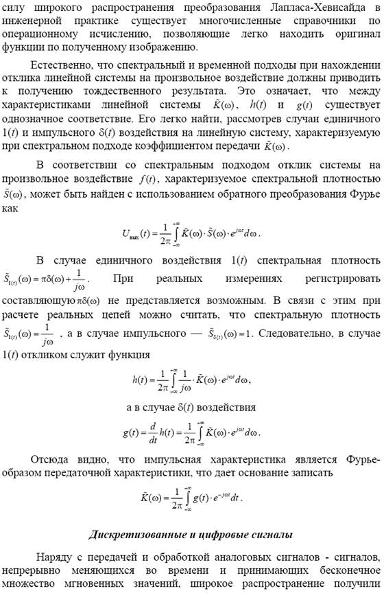 Временной метод анализа сигналов и его связь со спектральным методом. Преобразование Лапласа–Хевисайда. Функция Хевисайда. Переходная и импульсная характеристики линейной системы. Интеграл суперпозиции (интеграл Дюамеля). Аналоговые, дискретизованные и цифровые сигналы. Теорема Котельникова.