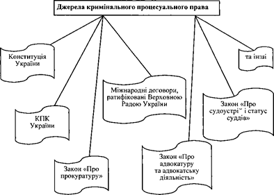 Конституція України — Основний Закон Української держави, який закріплює суспільно-політичний і державний устрій, права, свободи та обов'язки громадян України. Закони та інші нормативно-правові акти приймаються на основі Конституції і повинні їй відповідати. Згідно Конституції України визнається і діє принцип верховенства пра- ва. Це означає, що конституційні права та свободи громадян, в тому числі й у сфері кримінально-процесуальної діяльності, є безпосередньо діючими. Вони визначають цілі і зміст кримінального процесуального закону, спря- мованість діяльності суду, правоохоронних органів. Суди при розгляді конкретних справ мають оцінювати зміст будь-якого закону з точки зору його відповідності Конституції і в усіх необхідних ви- падках застосовувати Конституцію як акт прямої дії. Судові рішення мають ґрунтуватися на Конституції, а також на чинному законодавстві, яке не суперечить їй. Міжнародні договори, конвенції, згода на обов'язковість яких надана Верховною Радою України, є частиною національного законодавства нашої держави. Міжнародні договори, конвенції: Загальна декларація прав люди- ни; Європейська конвенція про видачу правопорушників; Конвенція про передачу засуджених осіб та інші.