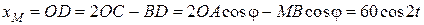 Це рівняння еліпса з напівосями 60 см і 20 см і центром в точці О. Траєкторією точки є вся крива, оскільки
