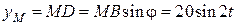 Таким чином,швидкість точки В змінюється за законом: