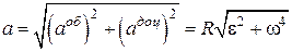 тобто дорівнює добутку квадрата кутової швидкості тіла на відстань точки Модуль повного прискорення точки, з урахуванням того, що