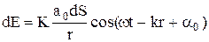 где множитель а0 определяется амплитудой светового колебания в том месте, где расположена площадка dS, коэффициент К зависит от угла между нормалью к площадке dS и направлением на точку наблюдения, k = 2p/l - волновое число. Аналогичная формула будет справедлива для любого точечного источника гармонической волны.