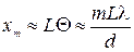 Если на некотором расстоянии L от решётки поместить фотопластинку, то на ней будет зарегистрирована дифракционная картина в виде узких дифракционных полос – рефлексов, положения которых определяются при малых углах дифракции соотношением