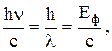 Фотоны это частицы (кванты), поток которых является одной из моделей электромагнитного излучения (ЭМИ). ЭНЕРГИЯ ФОТОНА: ЕФ = hn, - частота излучения, h - постоянная Планка, h = 6.6210-34 Джс). Энергия часто измеряется во внесистемных единицах «электрон-вольтах». 1 эВ = 1.6·10-19 Дж. Масса фотона связана с его энергией соотношением Эйнштейна ЕФ = mФc2, отсюда mФ = ИМПУЛЬС ФОТОНА: p = mФ c = где l - длина волны ЭМИ. ВНЕШНИЙ Фотоэффект есть явление вылета электронов из вещества (металла, фотокатода) при его облучении электромагнитным излучением (ЭМИ), например, светом. Вылетевшие электроны называются фотоэлектронами. Далее для краткости указанное явление будем называть просто фотоэффектом. Кинетическая энергия электрона внутри вещества увеличивается на h, но при вылете фотоэлектрона из вещества им совершается работа АВЫХ (работа выхода) против сил электростатического притяжения к металлу. У фотоэлектрона сообщенная ему фотоном порция энергии уменьшается на величину, равную работе выхода из металла (фотокатода), а оставшаяся часть имеет вид кинетической энергии фотоэлектрона вне металла (фотокатода):