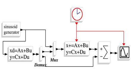 Использование символических параметров полезно, потому что оно позволяет нам создавать универсальную модель. Чтобы изменить матрицы A, B, и C и размерность системы или время дискретизации, мы должны изменить только определение m, n и матрицы. Никаких изменений в схеме не требуется.