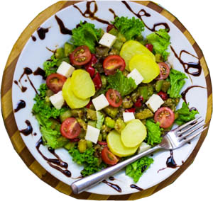 Теплый овощной салат с адыгейским сыром