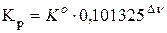 Стандартна константа рівноваги Ко пов’язана з константою рівноваги Кр співвідношенням: