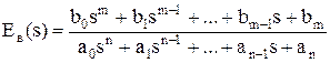 де W(s) – передавальна функція розімкнутої системи; Weх (s) - передавальна функція помилки за керуючим впливом. Цей вираз можна записати у вигляді дробово-раціональної функції