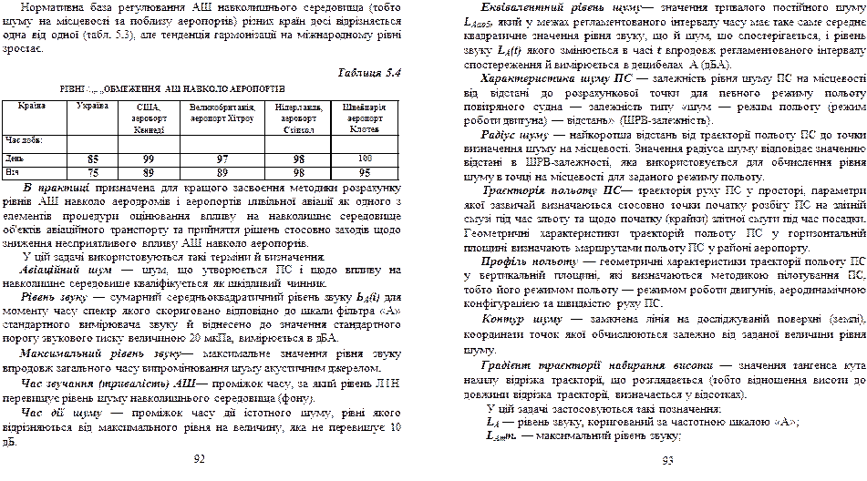 Нормативна база регулювання АШ навколишнього середовища (тобто шуму на місцевості та поблизу аеропортів) різних країн досі відрізняється одна від одної (табл. 5.3), але тенденція гармонізації на міжнародному рівні зростає. Таблиця 5.4 РІВНІ /.„,,„ОБМЕЖЕННЯ АШ НАВКОЛО АЕРОПОРТІВ