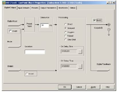 Так выглядит плагин, предназначенный для настройки контроллера освещения, а проще говоря, электрической лампочки с LON-интерфейсом. Здесь установлены стандартные параметры и в дополнение к ним введена задержка срабатывания 2 секунды. По желанию пользователь может инвертировать сигнал, настроить работу входов разрешения, ввести фильтрацию сигнала и изменить алгоритм функционирования устройства (прямая передача, задержка, защелка-триггер, импульс). Если работоспособность устройства вызывает сомнения, его можно протестировать. На приведенном рисунке показано окно результатов тестирования устройства.