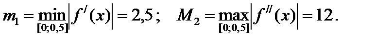 Так как на левом конце отрезка [0; 0,5] функция f(x) имеет тот же знак, что и ее вторая производная, в качестве начального приближения возьмем точку 0: х0 = 0. х1 = 0 – 1 / (-7) = 0,143. Погрешность этого значения есть (формула (7)):