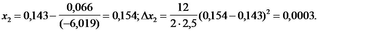 Погрешность второго приближения Δх2 = 0,0003 меньше требуемой точности ε = 0,005. Учитывая погрешность округления, равную 0,0005, получим: