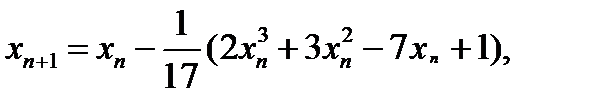 В качестве начального приближения примем середину рассматриваемого отрезка [-3; -2]: x0 = -2,5. Далее вычислим приближение корня: x1 = x0 – 1 / 17(2x03 +3x02 –7x0 + 1) = -2,853. Оценим погрешность приближенного значения x1 :