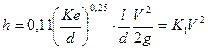 Ке – еквівалентна шорсткість, тобто утворена штучно при котрій досягається такий гідравлічний опір по довжині, як з природною шорсткістю того ж діаметру. Вона дорівнює по висоті діаметру фракцій тиску, який утворює її штучно.
