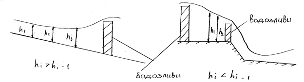 В поглубленому курсі “Гідравліки” для спеціальності “ВК” наводяться розрахункові залежності для визначення форми кривої вільної поверхні при нерівномірному русі рідини [3,4]. З урахуванням особливостей нерівномірного руху розраховуються важливі гідравлічні споруди гребель - водозливи. Водозлив – це першкода, крізь котру переливається рідина на своєму шляху. Бувають такі собі види водозливів (деяки приклади):