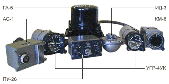 При работе с автопилотом АП-34Б курсовая система выдает в автопилот сигналы курса и углы отклонения вертолета от курса. Курсовая система ГМК-1А работает с выключателем коррекции ВК-53РВ, который выключает магнитную и горизонтальную коррекцию курсовой системы при разворотах вертолета. В системе ГМК-1А не предусмотрена стабилизация наружной рамы гироскопа и система не имеет электрической связи с авиагоризонтом АГБ-3К. При крене и тангаже вертолета курс выдается с карданной ошибкой. В зависимости от решаемых задач и условий полета курсовая система может работать в одном из режимов - гирополукомпаса (ГПК) или магнитной коррекции (МК). Основным режимом работы системы является режим гирополукомпаса с периодической коррекцией его показаний от магнитного корректора. В комплект курсовой системы ГМК-1А входят: пульт управления ПУ-26, гироагрегат ГА-6, автомат согласования АС-1, коррекционный механизм КМ-8, индукционный датчик ИД-3 и два указателя УГР-4УК. Выключатель коррекции ВК-53