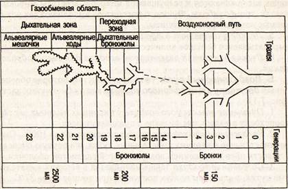 и их объемы после спокойного выдоха; объем альвеолярных мешочков - 1300 мл, альвеол — 1200 м