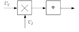 порядок астатизма (будет рассмотрен далее) системы ФАП на единицу больше порядка астатизма системы ФАП. Так же, как и система ЧАП, система ФАП может быть использована для решения задачи стабилизации частоты автогенераторов в качестве следящих фильтров, устройств синхронизации приема фазоманипулированных сигналов и многих других целей. При использовании системы ФАПЧ в качестве следящего фильтра его полоса может составлять десятки герц, герцы и даже доли герца. Функции, выполняемые в ФАП устройствами ФНЧ, УЭ и УГ, такие же, как и в системе ЧАП. Принцип действия системы ФАП во многом совпадает с действием системы ЧАП. Основные отличия связаны с управлением процессом изменения фазы (а не частоты) и с наличием фазового дискриминатора (а не частотного). Рассмотрим работу фазового детектора (дискриминатора). Элементарной схемой ФД является схема, состоящая из последовательного соединения умножителя и фильтра нижних частот (рис. 3.21).