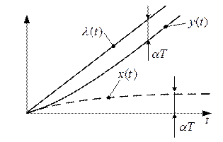 Рис. 4.17. Динамическая ошибка системы с одним интегратором при линейно возрастающем входном воздействии