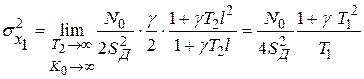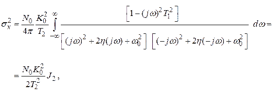 4. Флуктуационная ошибка в замкнутой системе с последовательно включенными двумя интеграторами и стабилизирующим звеном. Для определения флуктуационной ошибки в этой системе воспользуемся результатами анализа системы с пропорционально интегрирующим фильтром. Переход к этой схеме от схемы пропорционально интегрирующего фильтра можно осуществить, положив Тогда дисперсию ошибки получим, подставив в выражение (4.84)