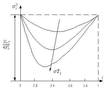 Рис. 4.40. Зависимость дисперсии от отношения постоянных времени