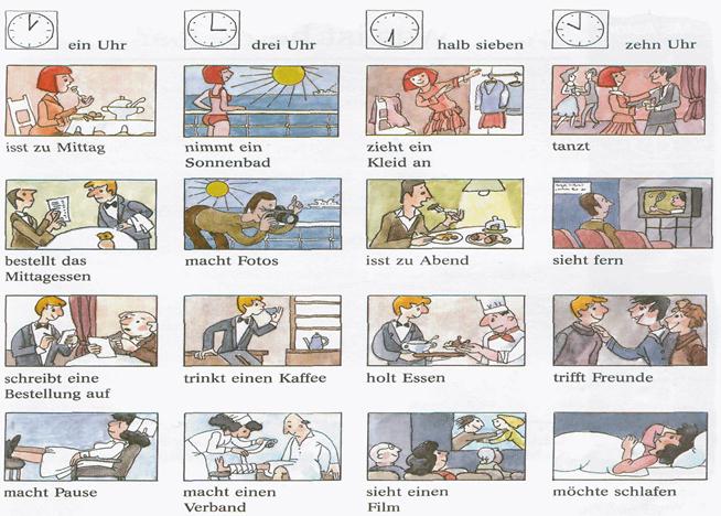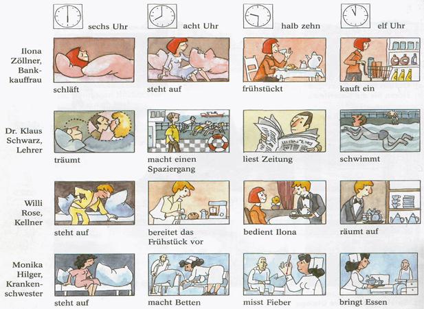 21.3. Как вы полагаете, что делают персонажи в промежутках времени, указанного на циферблатах? Zwischen sechs und acht Uhr... Ilona Zöllner... Villeicht... Ilona Zöllner zwischen drei und halb sieben Uhr...