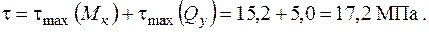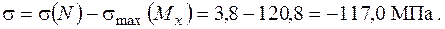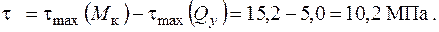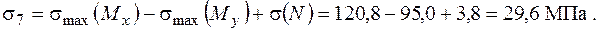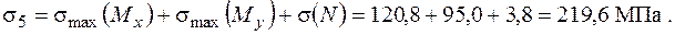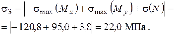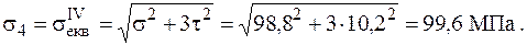 Підраховуємо еквівалентні напруження у восьми характерних точках небезпечного перерізу ОО:
