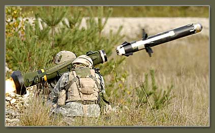 FGM-148 Javelin – переносной противотанковый ракет Ракета комплекса Javelin оснащена инфракрасной головкой самонаведения (ИК ГСН), что реализует принцип «выстрелил-забыл», позволяющий оператору после пуска ракеты уходить в укрытие или сменить позицию. Ракета имеет два режима атаки цели: режим пикирования (угол пикирования 45°) и прямой атаки в горизонтальной плоскости. Первый режим применяется при действии против танков и позволяет поразить цель Система «мягкого пуска» позволяет стрелять из закрытых помещений. Комплекс отличается устойчивостью к мерам электронного противодействия.