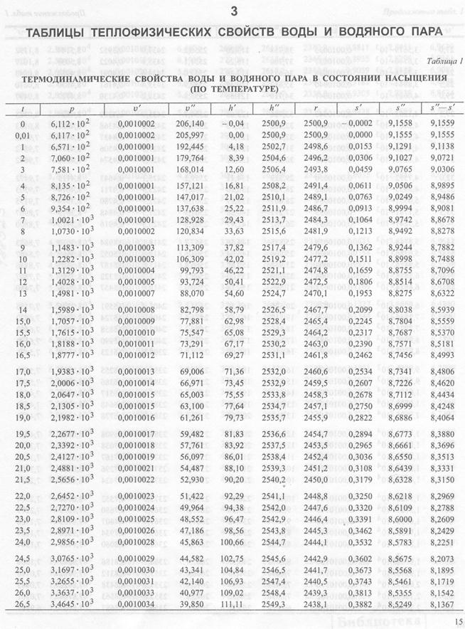 Рис. 6.1. Таблица Теплофизических свойств воды и водяного пара