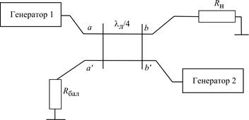 На участках a-b и a′-b′ две линии длиной имеют между собой электромагнитную связь (рис. 1.33). Если в системе Rн = Rбал = Z0, то точки, расположенные на диагоналях a-a′ и b-b′, развязаны между собой.