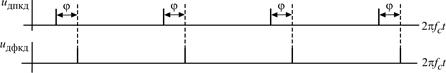 Как было сказано, напряжение uИФД определяется разностью фаз последовательностей импульсов, поступающих с ДПКД и ДФКД (рис. 2. 15).